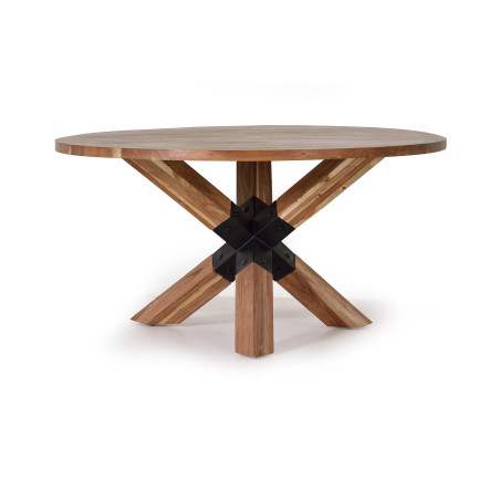 MESA DE COMEDOR EN MADERA DE ACACIA Y METAL. GROSOR DE LA TAPA: 37mm. GROSOR DE LAS PATAS: 10CM