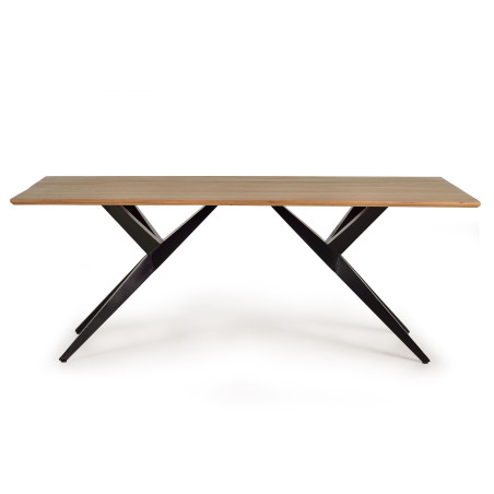 MESA DE COMEDOR FABRICADA EN MADERA DE ACACIA Y BASE DE METAL.